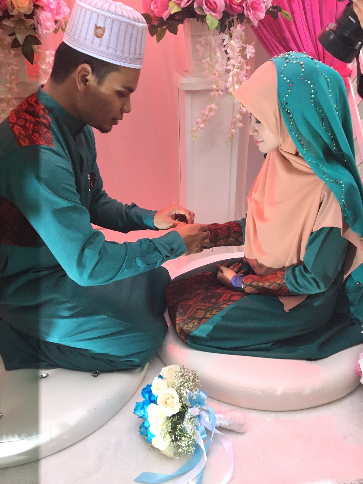 Kalau nak imbas satu-satu sampai dah tak terimbas dah nak imbas yang mana perlu diimbas kembali. Faham? buat-buat faham je. *lempang kuat2* Alhamdulillah sempat sampai sebelum masanya. dapat laaa posing2 dulu sebelum akad. kengkonon gambar kenangan akhir zaman bujang. memang dah akhir sangat dah tu tinggal beberapa minit je lagi.